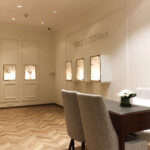 We wanted to create a space where the jewellery was treated like art. The lighting was only focussed on the display with minimal general lights. The loud wooden floors and small space ensured people were careful and quiet. Soft instrumental music is played in the background with an incense lingering around. The displays are lined with felt and all customized and designed by us.