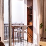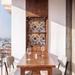 The balcony was one space the clients use a lot, it was quite special to them. The balcony offered a view of the sky, with gorgeous sunsets – and this was something we didn’t want them to miss out on. We wanted to create a multifunctional space that they could maximize. This was a space that could be used to grab a coffee, have a meal, work, or even be used as a bar. The table folds upwards for when one would want to use the entire balcony and opens up when one would need the table/bar. The rafters on the ceiling hold the wiring for the lights above.