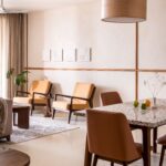 A house designed to suit the needs of a young working couple. With a limitation of 900 sq.ft. of space, we had to work to maximize the functionality of the space, which is why we chose to introduce all the space saving features within the furniture. Taking into account that the couple works from home, the space also had to seamlessly transition from a work environment to a space where the couple could host gatherings. The brief required a design that was earthy, fluid, and natural – a seamless flow of design.
