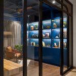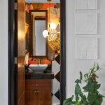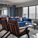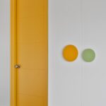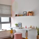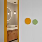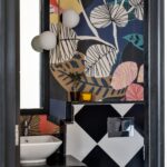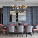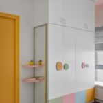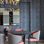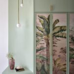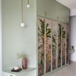 It was important for the couple to have spaces with their own personality. For instance, the children’s room is designed with pastel and is light and playful. The guest room’s highlighting element is the wardrobe with tropical wallpaper, which is visible from the living room. In general, wallpaper was a tying element through the house. The foyer had a custom-made wallpaper in the foyer, which was then resonated in the powder room.