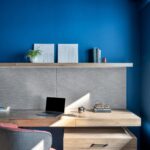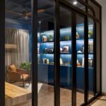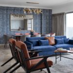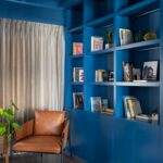 The house plays with colours and light in various forms. The common areas are darker, bolder, and print heavy. These spaces can be high energy, so bolder colours complement this well. The kitchen and the study are examples of this – using darker tones, yet still creating warm and inviting spaces.