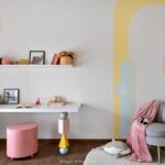 On the other hand, private spaces like bedrooms are for relaxation. So, these use more subtle and neutral tones, like the pastel tones in the children’s bedroom. Similarly, the guest bedroom was sage green with tropical wallpaper, and master bedroom was white and black, with a pop of rust on the bed. These were spaces that embodied calming energy.