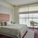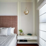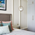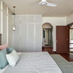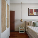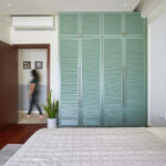 The bedrooms were designed to stand out in their own ways. Each one had its own colour palette and materials to match. The statement piece for the first room was a green louvered wardrobe with heavily textured fabric.