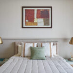 For the primary suite, we extended the blue tones in subtle elements. The bedding featured little pops of colour, with grey to provide a more relaxed contrast. The primary suite was meant to evoke a sense of calmness juxtaposed with bright tones of blue.